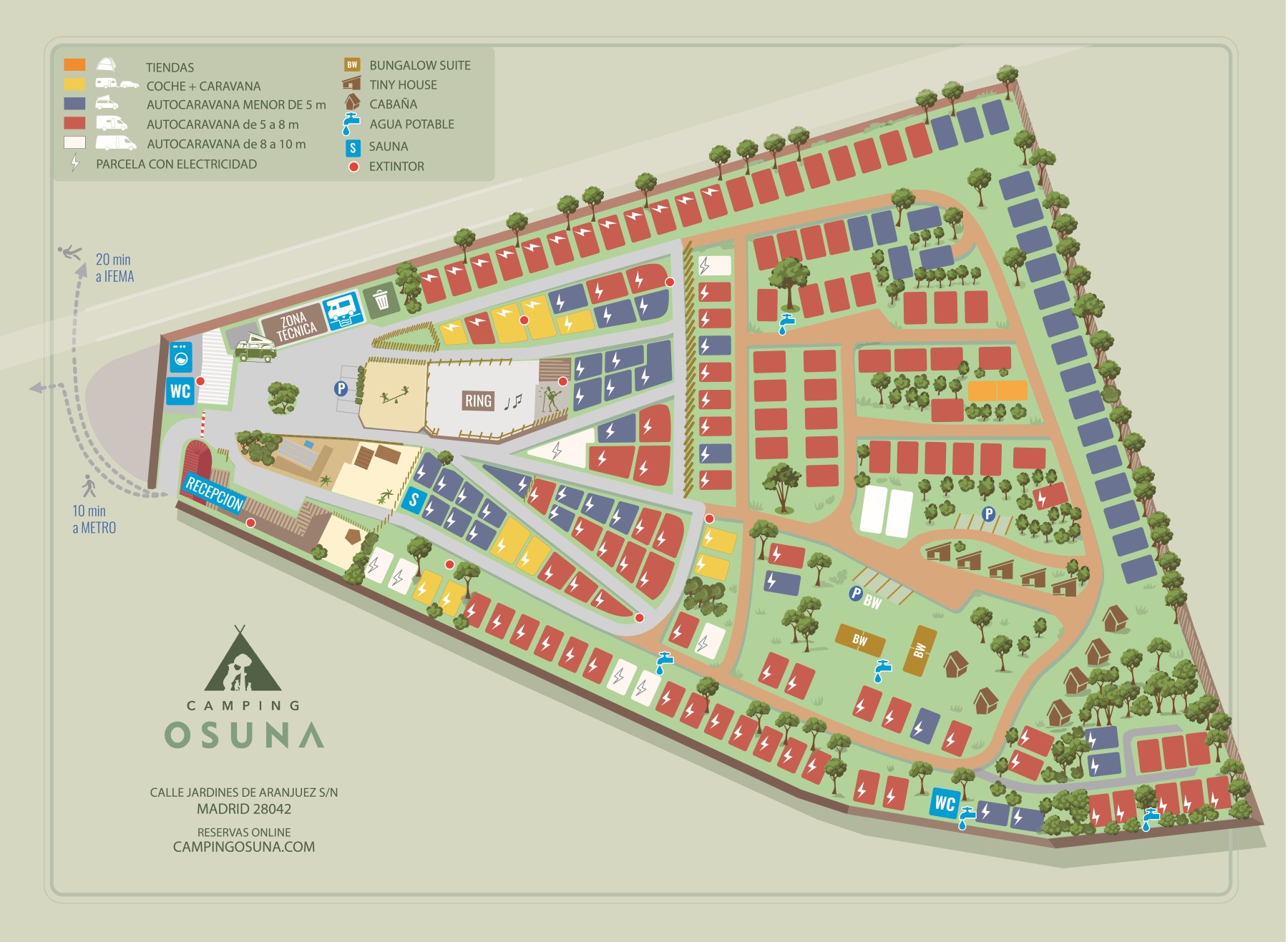 Camping Osuna nació en 1959 como un espacio pensado para los viajeros que querían descubrir Madrid sin renunciar al contacto con la naturaleza. Rodeado de pinos, junto al Parque El Capricho y el Parque Juan Carlos I, se ha convertido en un punto de encuentro único, donde la ciudad y la naturaleza conviven en perfecta armonía.